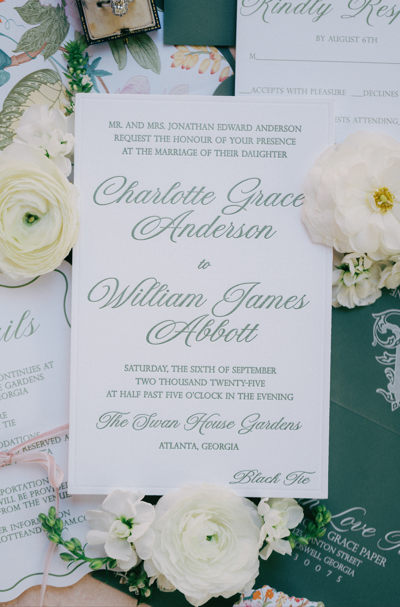 Perfect for garden weddings, spring celebrations, estate venues, and romantic outdoor settings, this suite sets the tone for a celebration filled with warmth, charm, and intentional design.